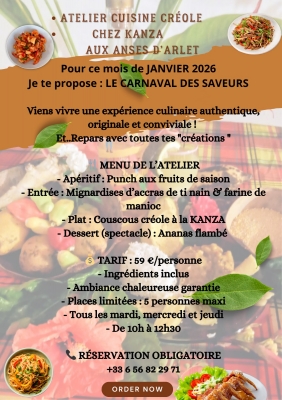 Régalez-vous avec notre offre de repas chez l'habitant : du dîner gastronomique au brunch créole en passant par le déjeuner ou l'apéro, dégustez des petits plats traditionnels préparés par nos hôtes locaux de la Caraïbe.